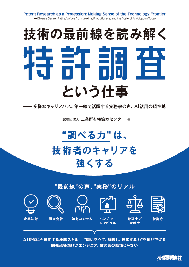 一般財団法人 工業所有権協力センターは、特許調査の基礎からキャリアの広がり、実務のリアル、そして急速に進むAI活用までを一冊にまとめた書籍『技術の最前線を読み解く特許調査という仕事』を、2026年4月7日※より発売します。